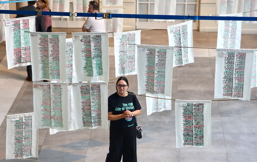 In this installation, we honour lives lost in Gaza during 2023-2025 through the lens of Tatreez, traditional Palestinian embroidery. Each name stitched transforms anonymous statistics back into individuals with stories, dreams, and families.